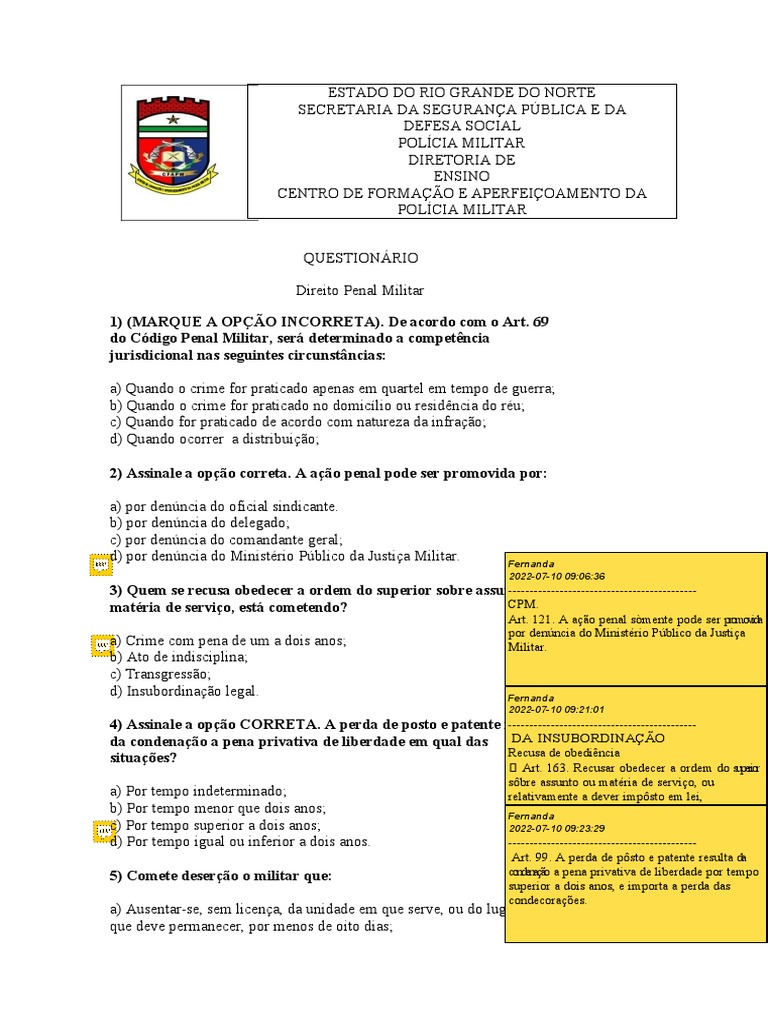 (C) Abandono de posto, artigo 195 do CPM Fernanda