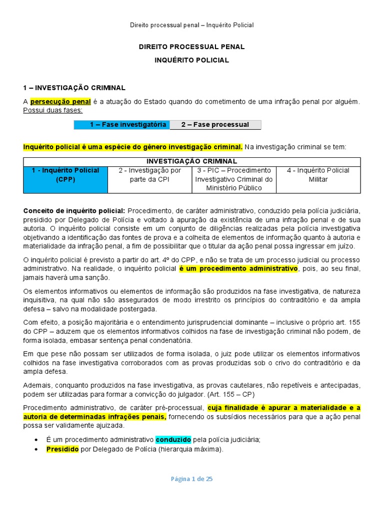 Direito Processual Penal - Inquérito Policial
