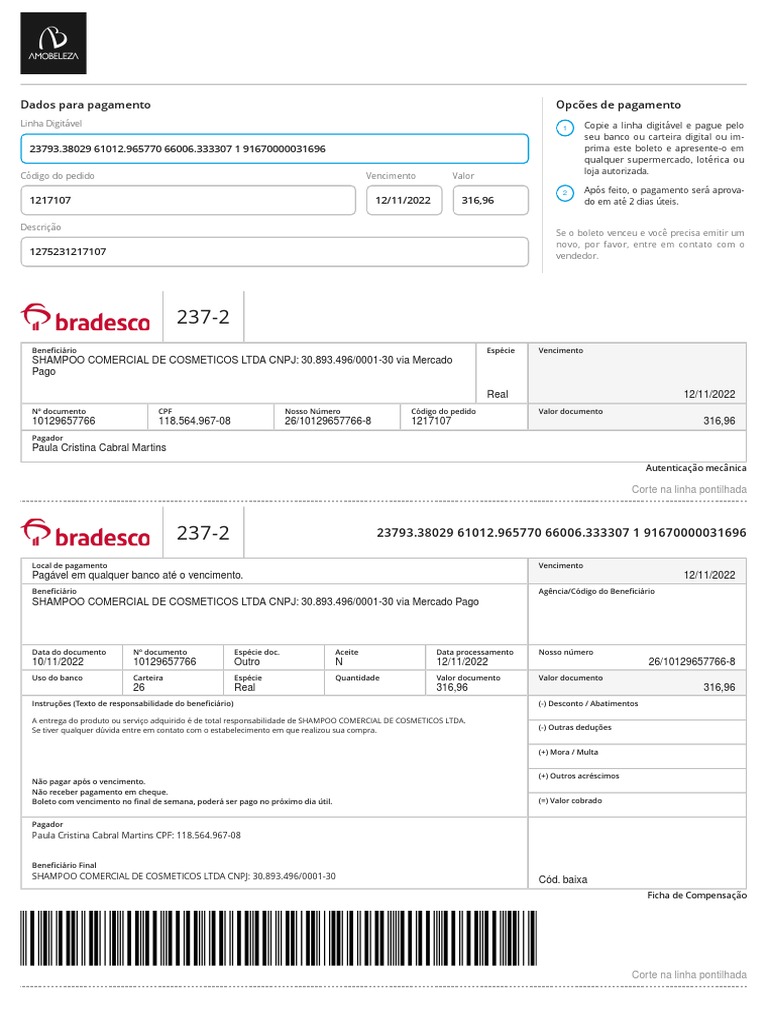 SHAMPOO COMERCIAL DE COSMETICOS LTDA CNPJ: 30.893.496/0001-30 via Mercado Pago