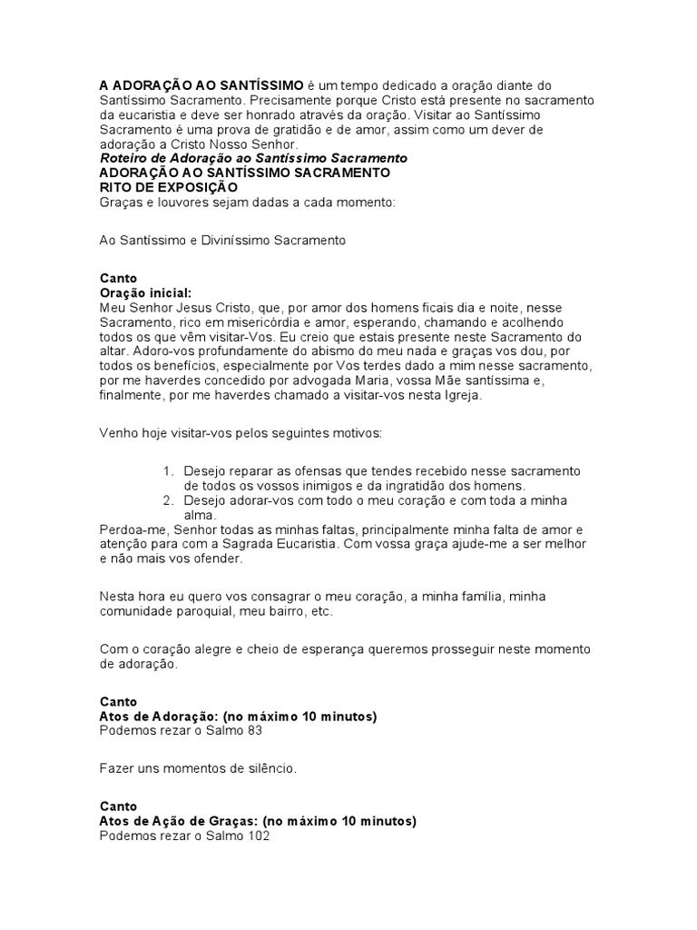 Roteiro de Adoração ao Santíssimo Sacramento