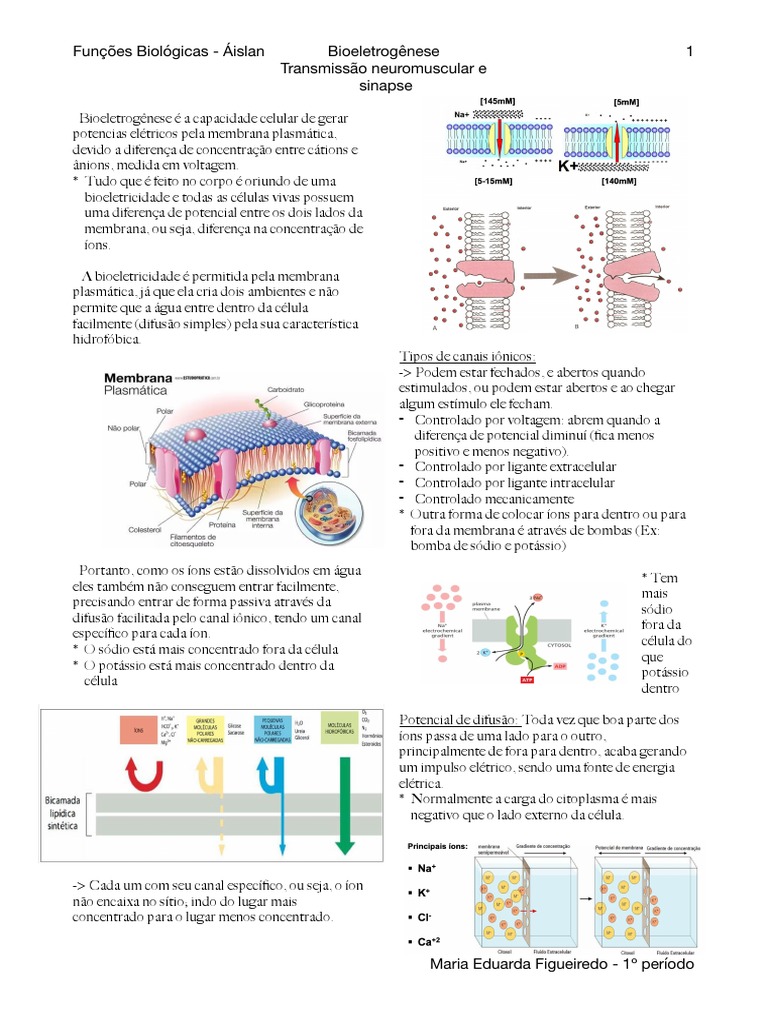 para impedir um curto circuito, permitindo que o • Potencial de ação = célula repolarizada -> e uxo