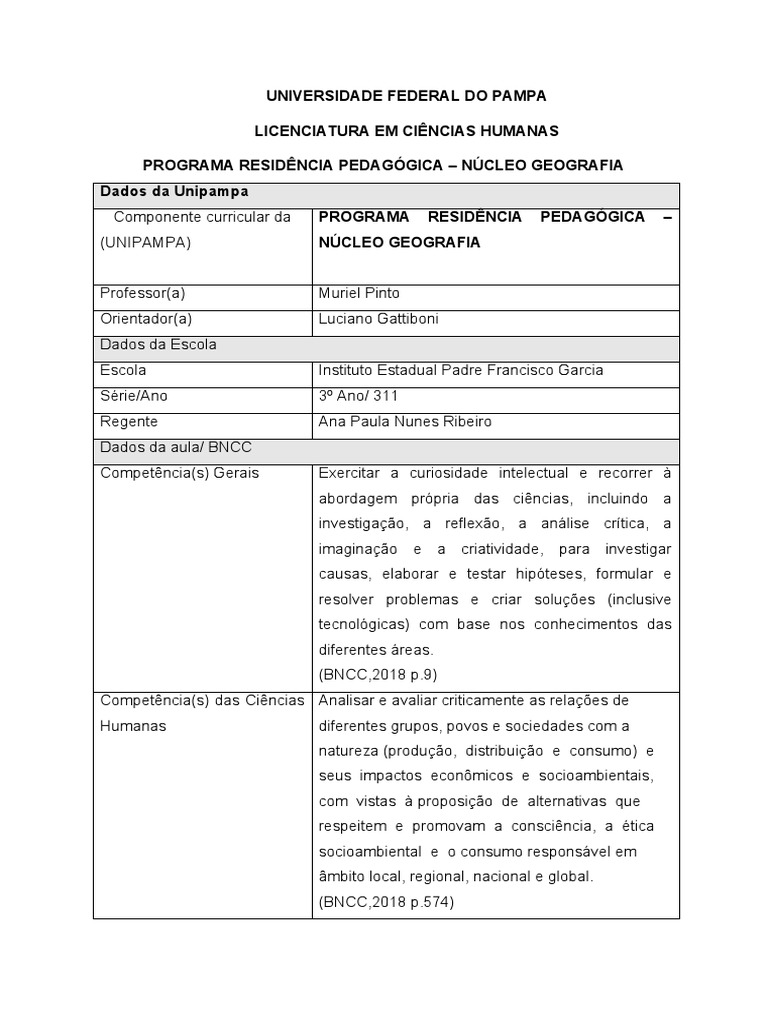 PROGRAMA RESIDÊNCIA PEDAGÓGICA – NÚCLEO GEOGRAFIA