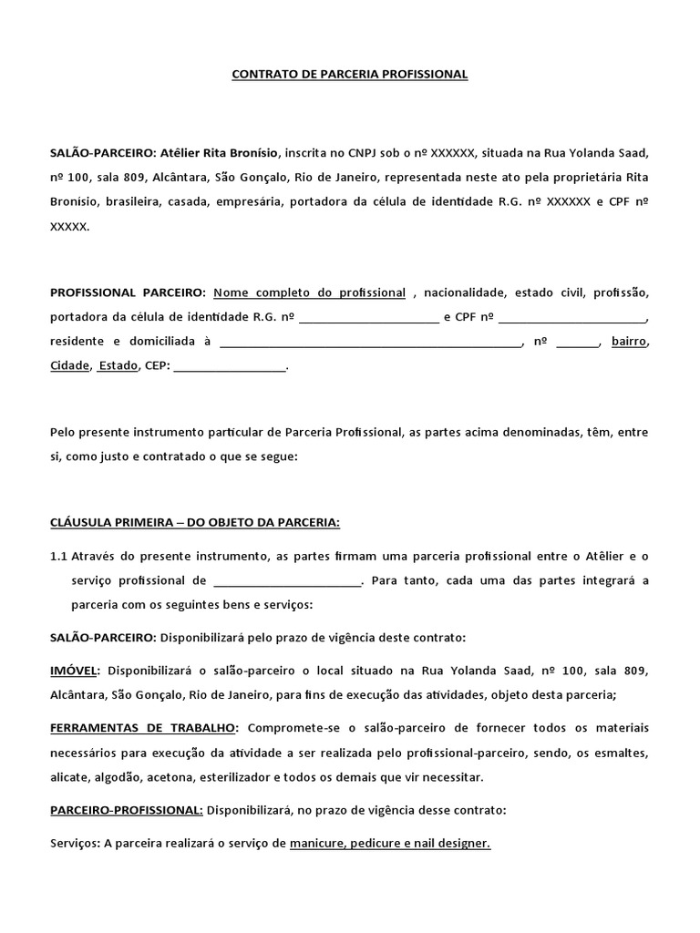 1.1 Através do presente instrumento, as partes firmam uma parceria profissional entre o Atêlier e o