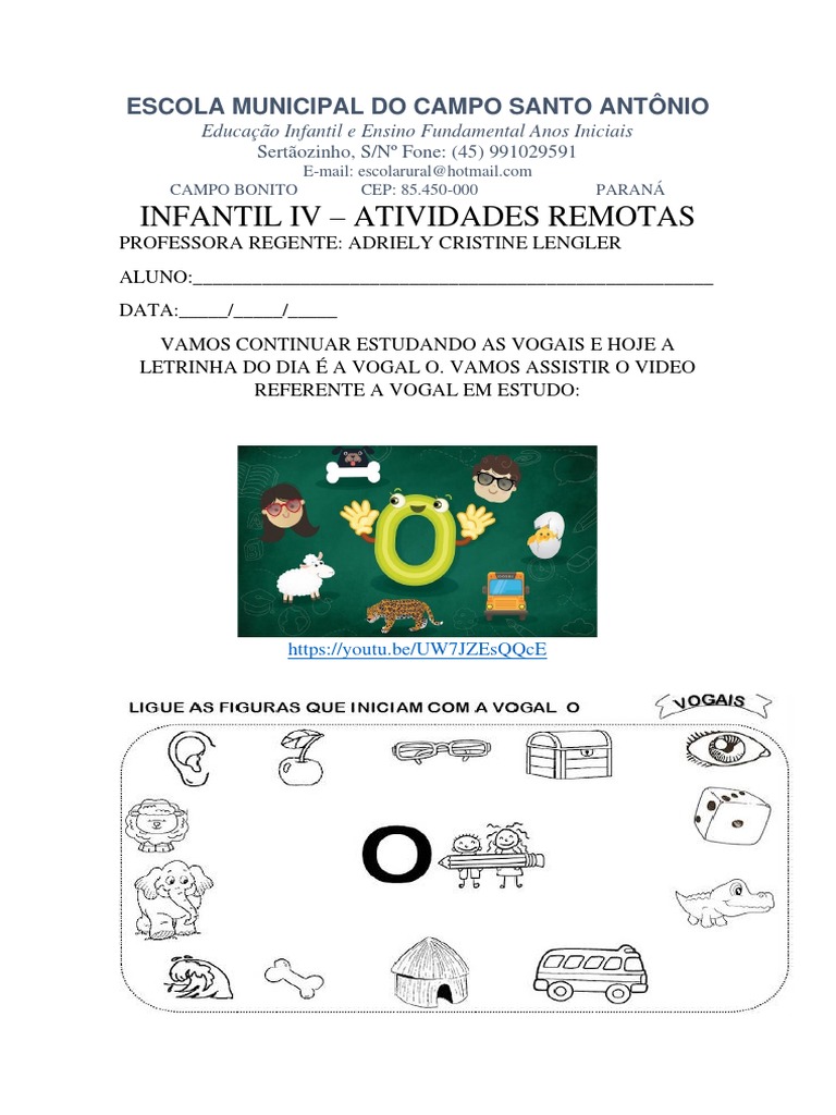 LETRINHA DO DIA É A VOGAL O. VAMOS ASSISTIR O VIDEO