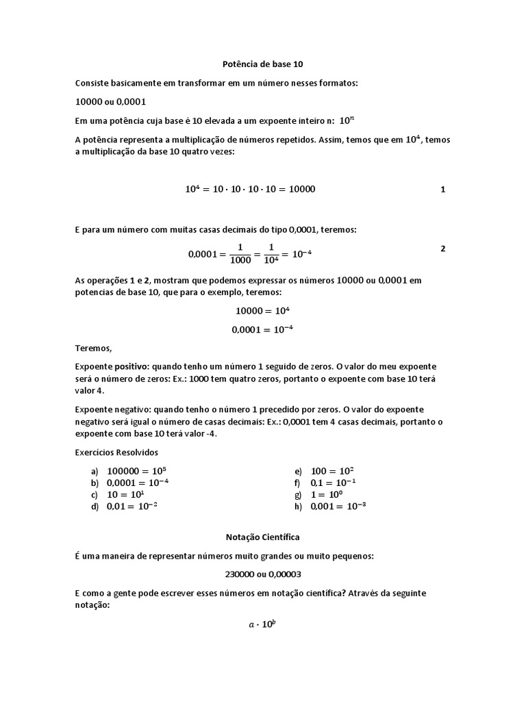 As operações 1 e 2, mostram que podemos expressar os números 10000 ou 0,0001 em