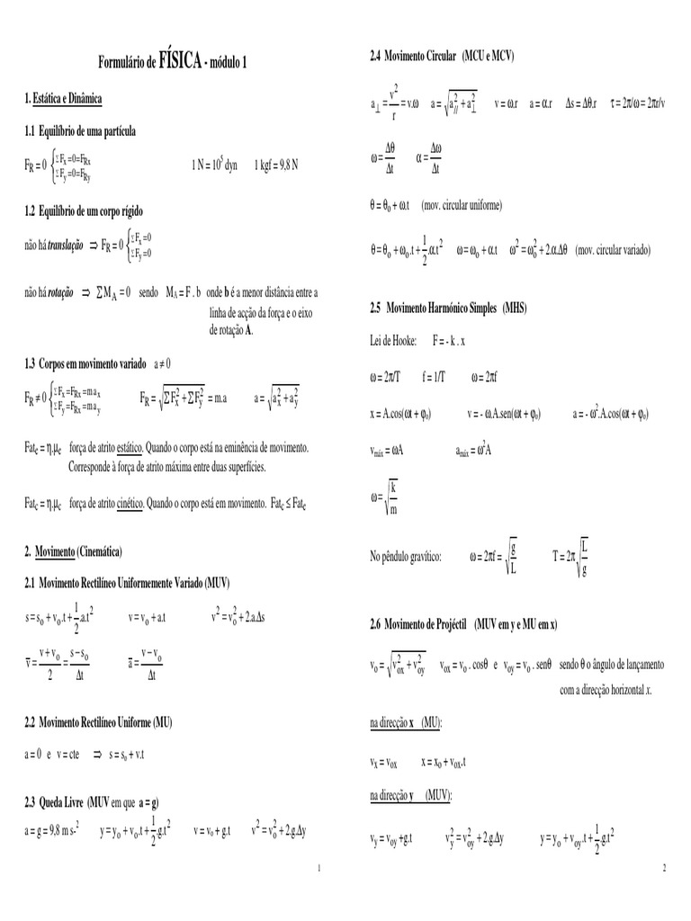 Formulario Fisica I