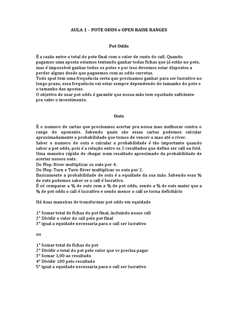 AULA 1 – POTE ODDS e OPEN RAISE RANGES