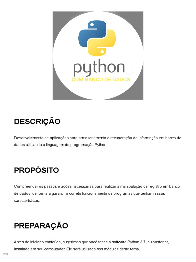 Neste tema, aprenderemos a utilizar o Python para criar aplicações que utilizam banco de dados.