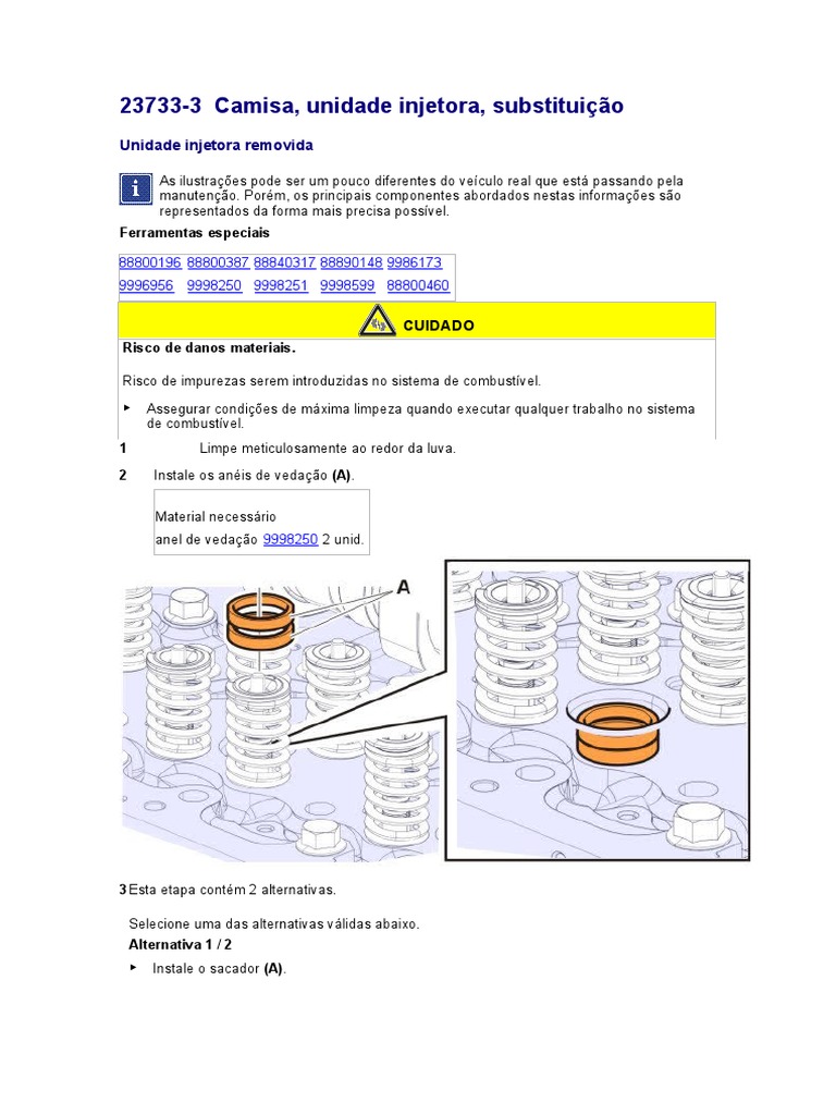 23733-3 Camisa, unidade injetora, substituição