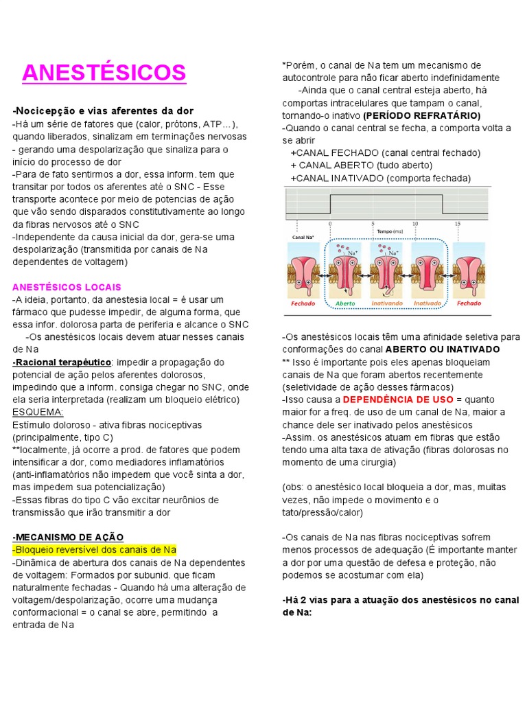 mas impedem sua potencialização) (obs: o anestésico local bloqueia a dor, mas, muitas