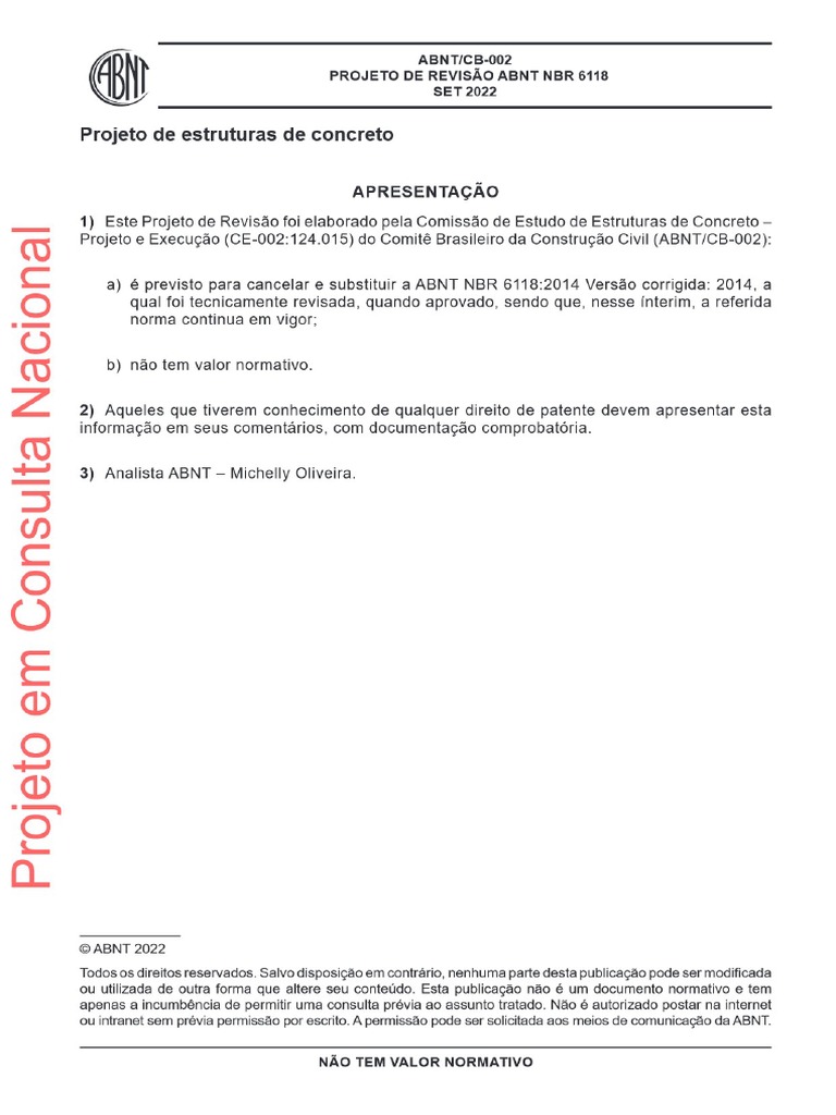 AABNT NBR 6118:2022 cancela e substitui a ABNT NBR 6118:2014 Versao Corrigida:2014, a qual foi