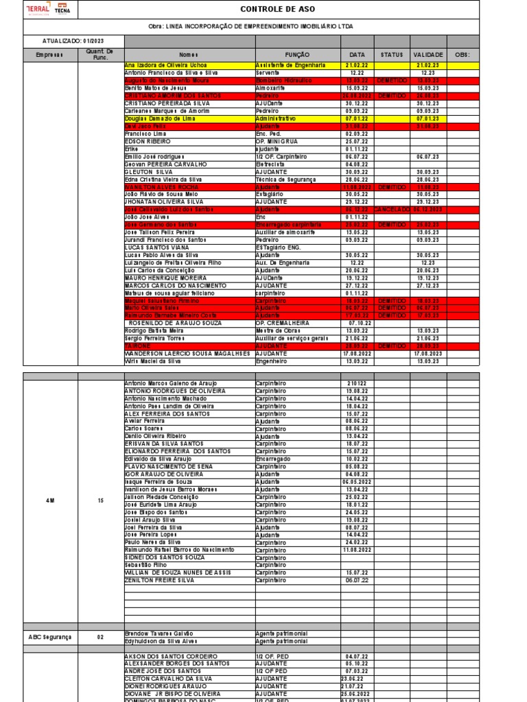 Empresas Nomes FUNÇÃO DATA STATUS VALIDADE OBS: