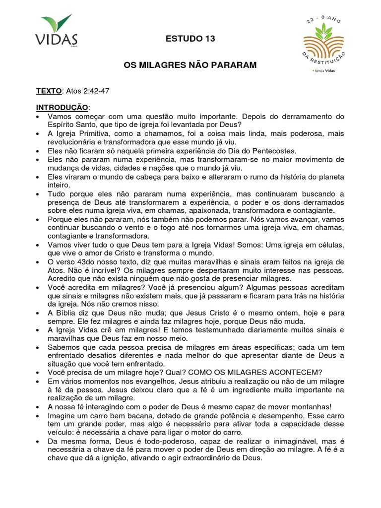 • A Igreja Vidas crê em milagres! E temos testemunhado diariamente muitos sinais e