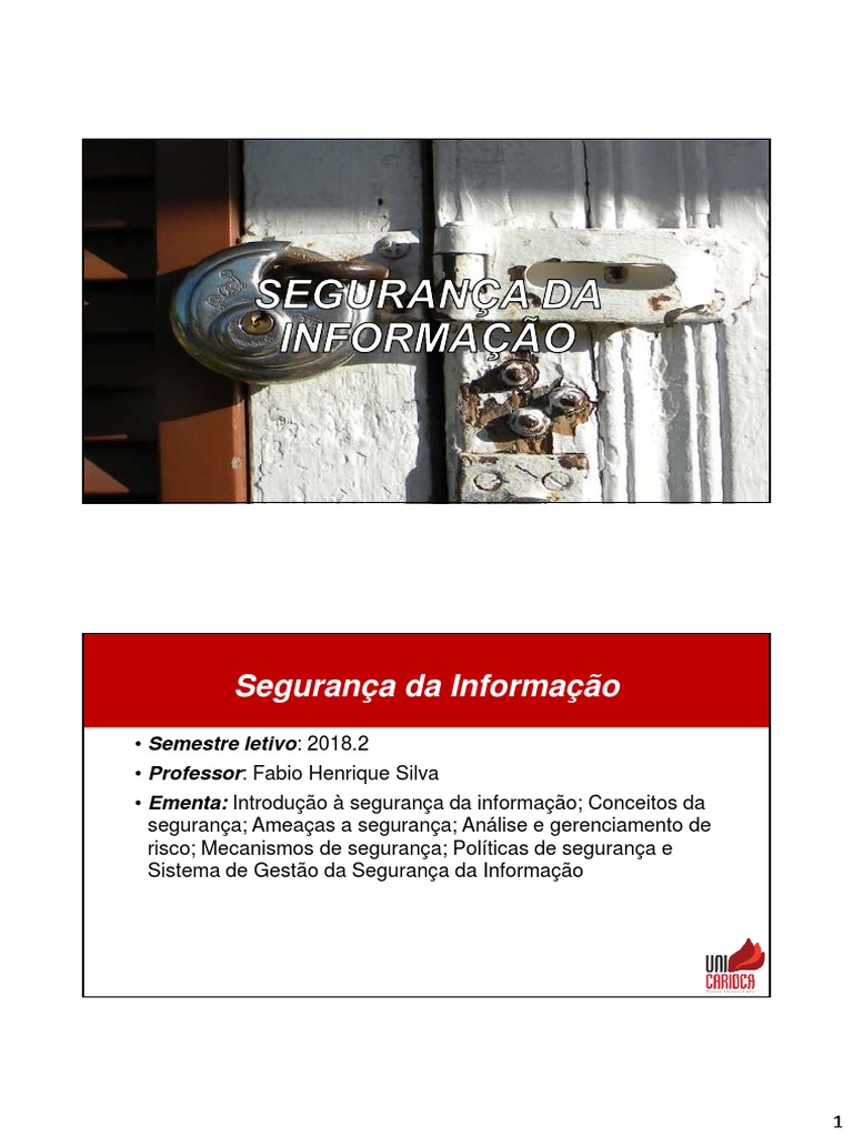 • Ementa: Introdução à segurança da informação; Conceitos da