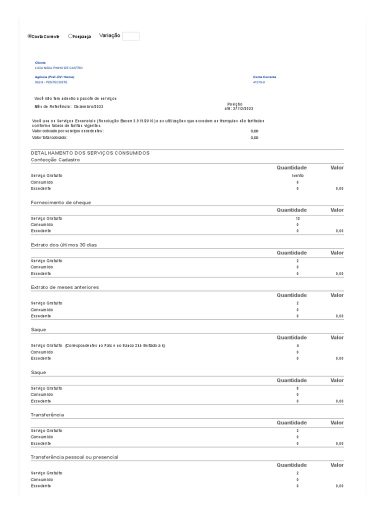 Você usa os Serviços Essenciais (Resolução Bacen 3.919/2010) e as utilizações que excedem as franquias são tarifadas