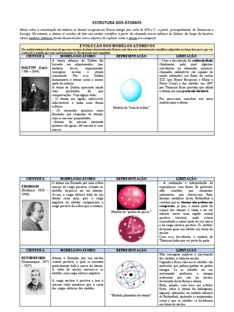 CIENTISTA MODELO DO ÁTOMO REPRESENTAÇÃO LIMITAÇÃO