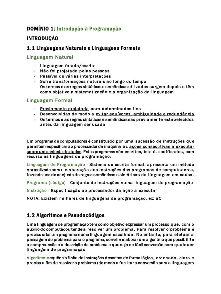 DOMÍNIO 1: Introdução à Programação