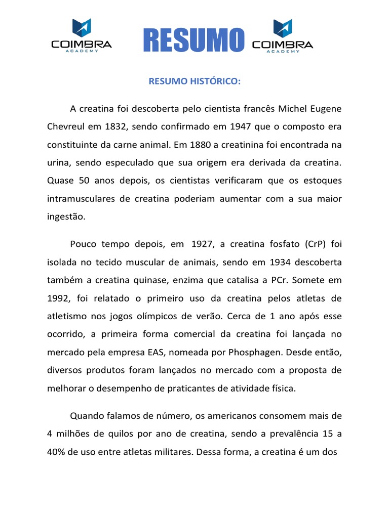40% de uso entre atletas militares. Dessa forma, a creatina é um dos