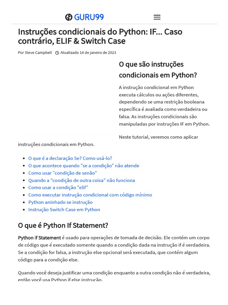 Python if Statement é usado para operações de tomada de decisão. Ele contém um corpo