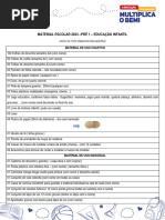 creme dental (o nécessaire deverá permanecer na mochila da criança).