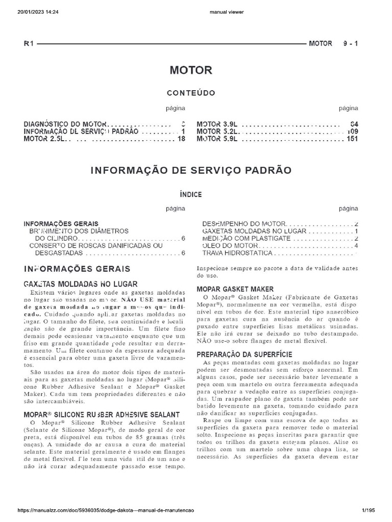 100%(3)100% acharam este documento útil (3 votos) 632 visualizações195 páginasDodge Dakota Manual Motor