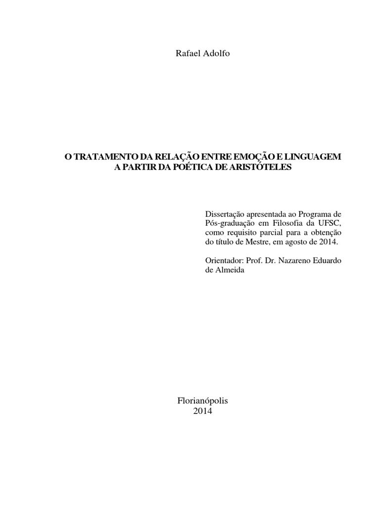 Palavras-chave: Aristóteles, Poética, emoção, linguagem.