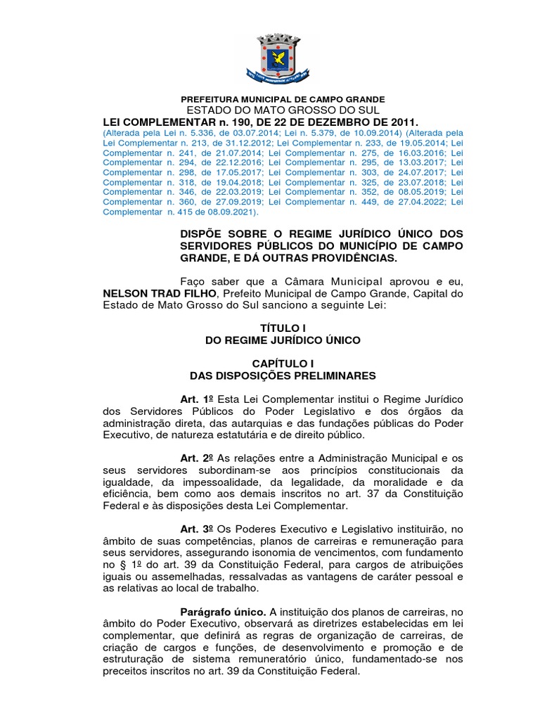 Complementar n. 360, de 27.09.2019; Lei Complementar n. 449, de 27.04.2022; Lei