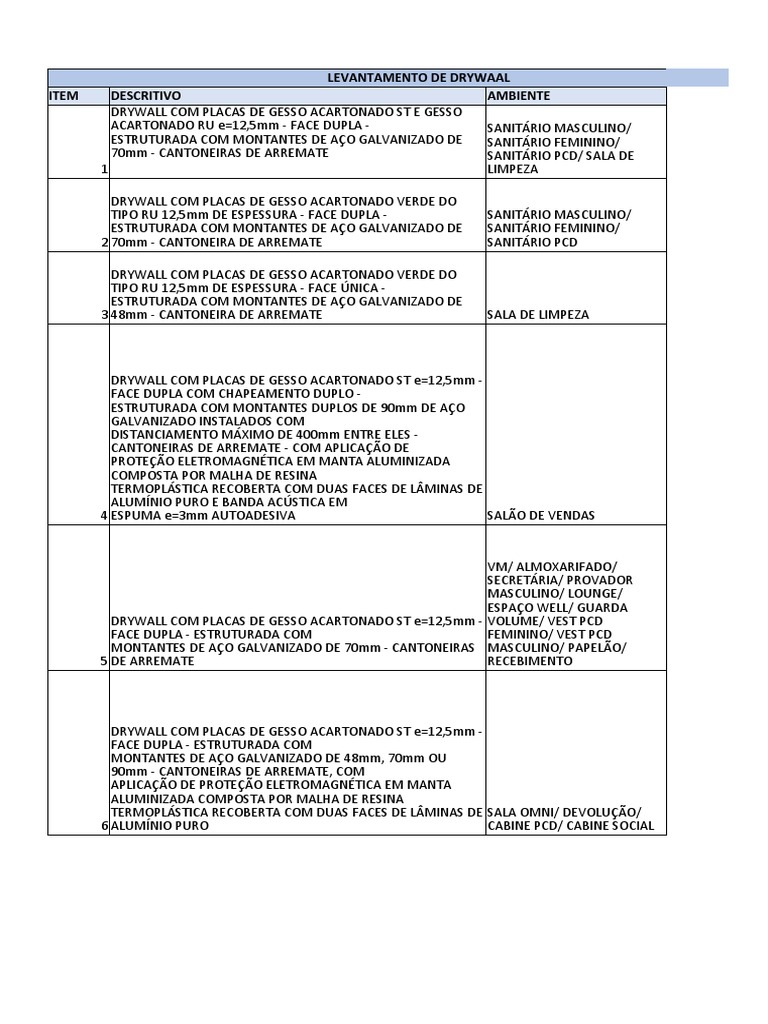 LEVANTAMENTO DE DRYWAAL
