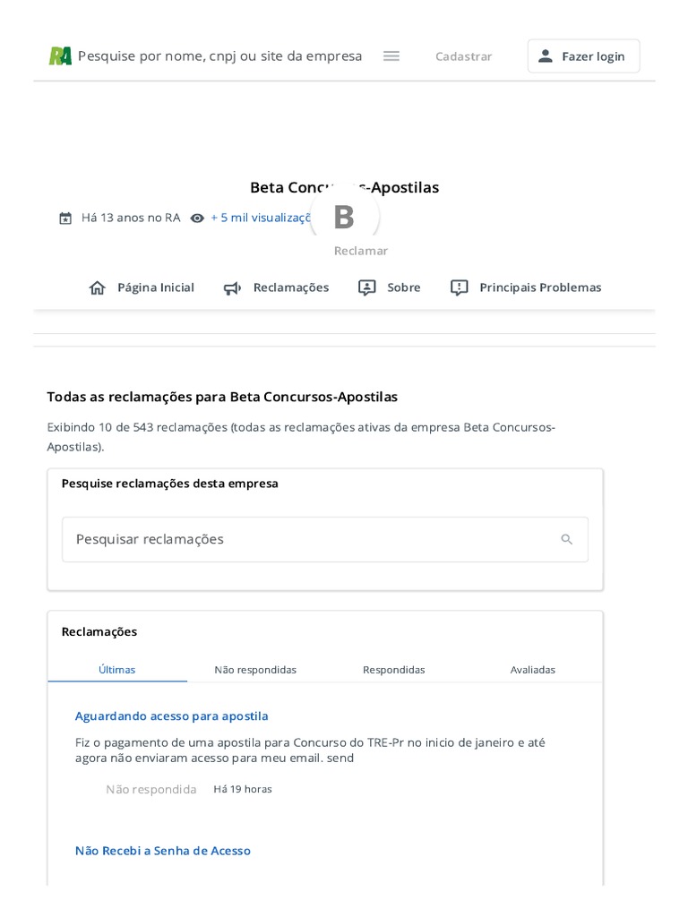 Exibindo 10 de 543 reclamações (todas as reclamações ativas da empresa Beta Concursos-