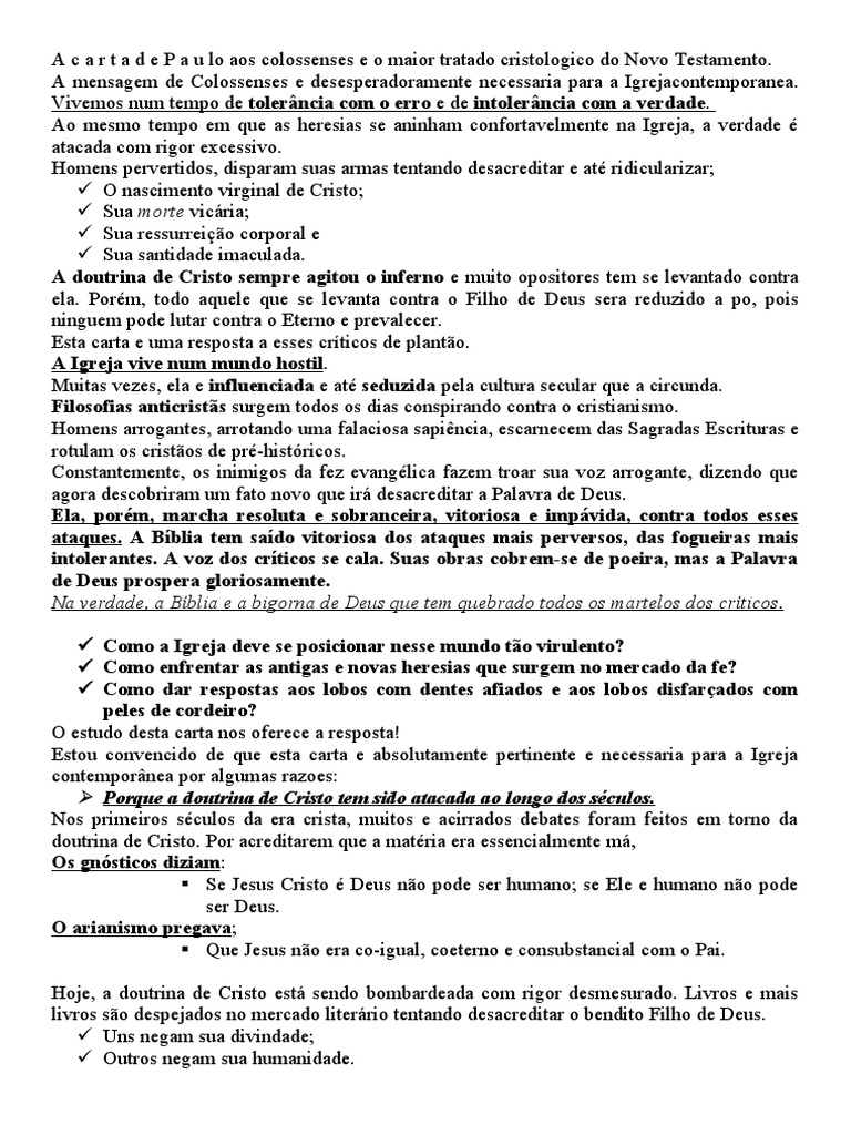 A c a r t a d e P a u lo aos colossenses e o maior tratado cristologico do Novo Testamento.