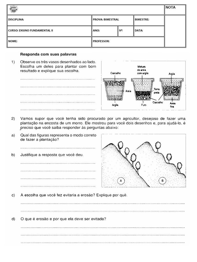 alternativas. d) Argila ( ) A erosão forma