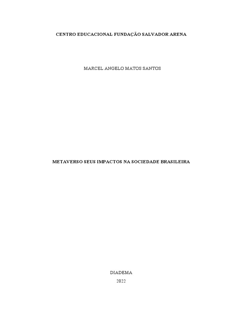 Este trabalho é a resultante da pesquisa “Metaverso e possíveis Impactos sociais