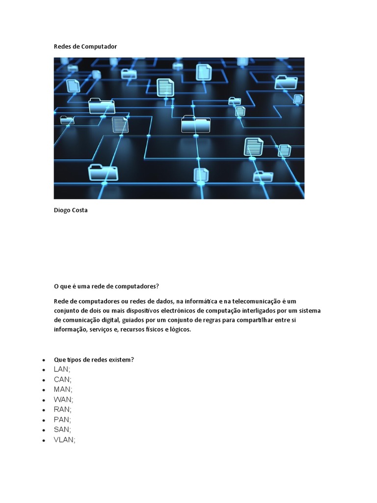 Rede pessoal, da Rede de área local e da Rede de área metropolitana.