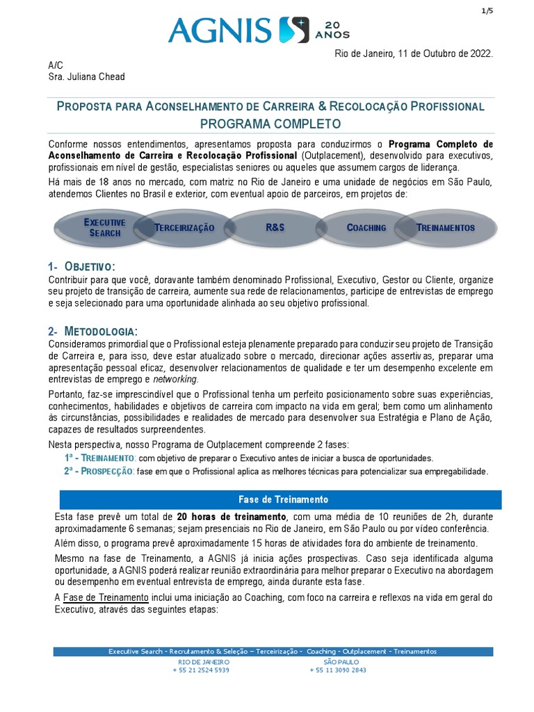 PROPOSTA PARA ACONSELHAMENTO DE CARREIRA & RECOLOCAÇÃO PROFISSIONAL
