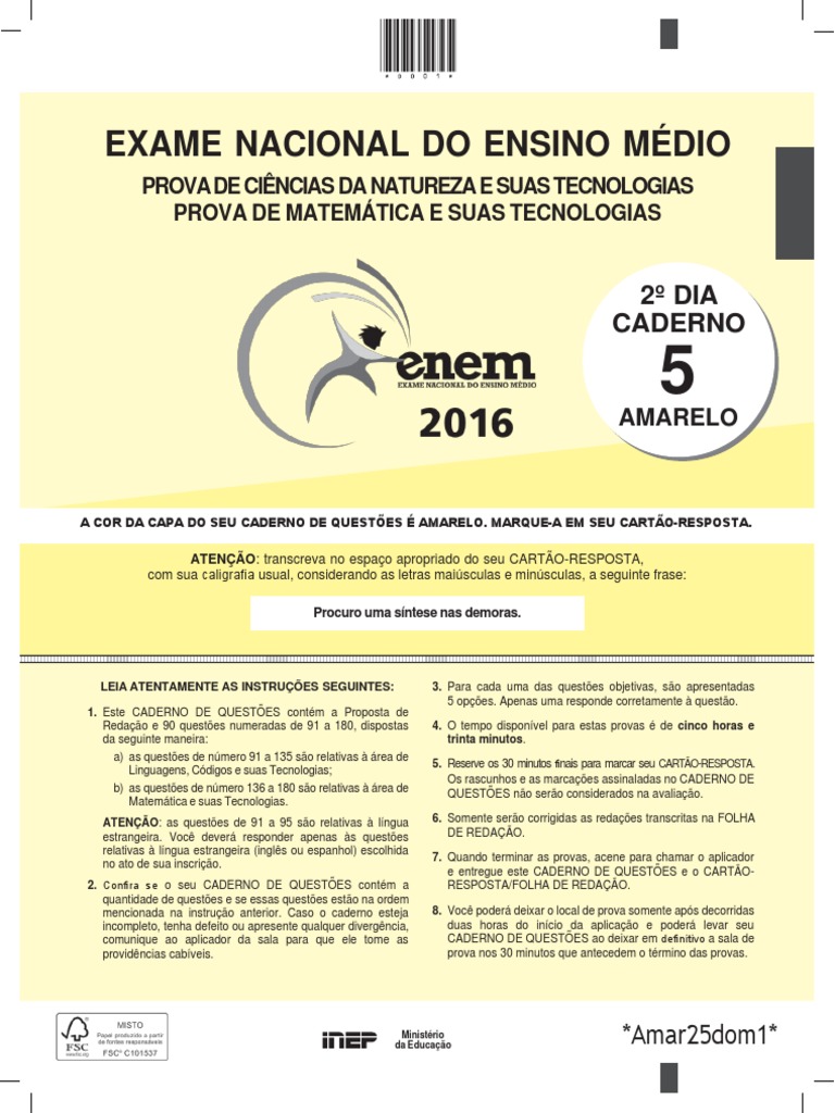 Redação e 90 questões numeradas de 91 a 180, dispostas 4. O tempo disponível para estas provas é de cinco horas e