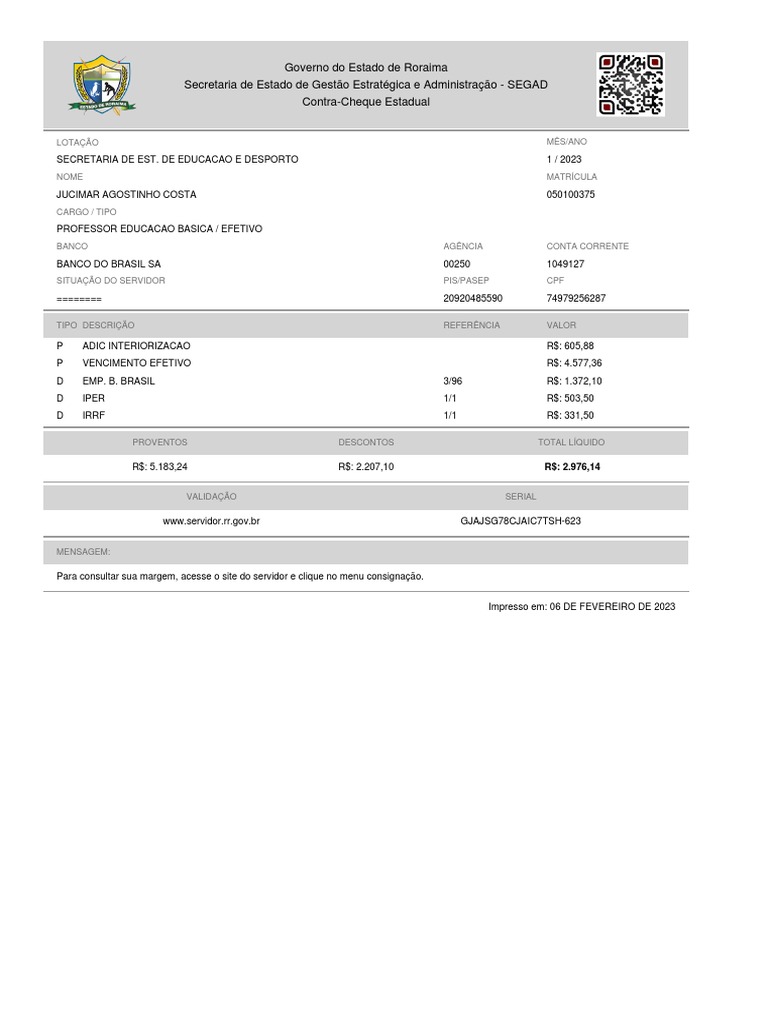 Impresso em: 06 DE FEVEREIRO DE 2023