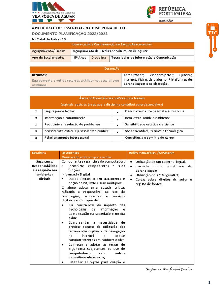 Ano de Escolaridade: 5º Anos Disciplina Tecnologias de Informação e Comunicação