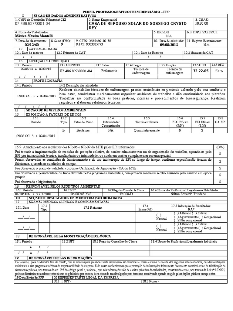 PERFIL PROFISSIOGRÁFICO PREVIDENCIÁRIO – PPP