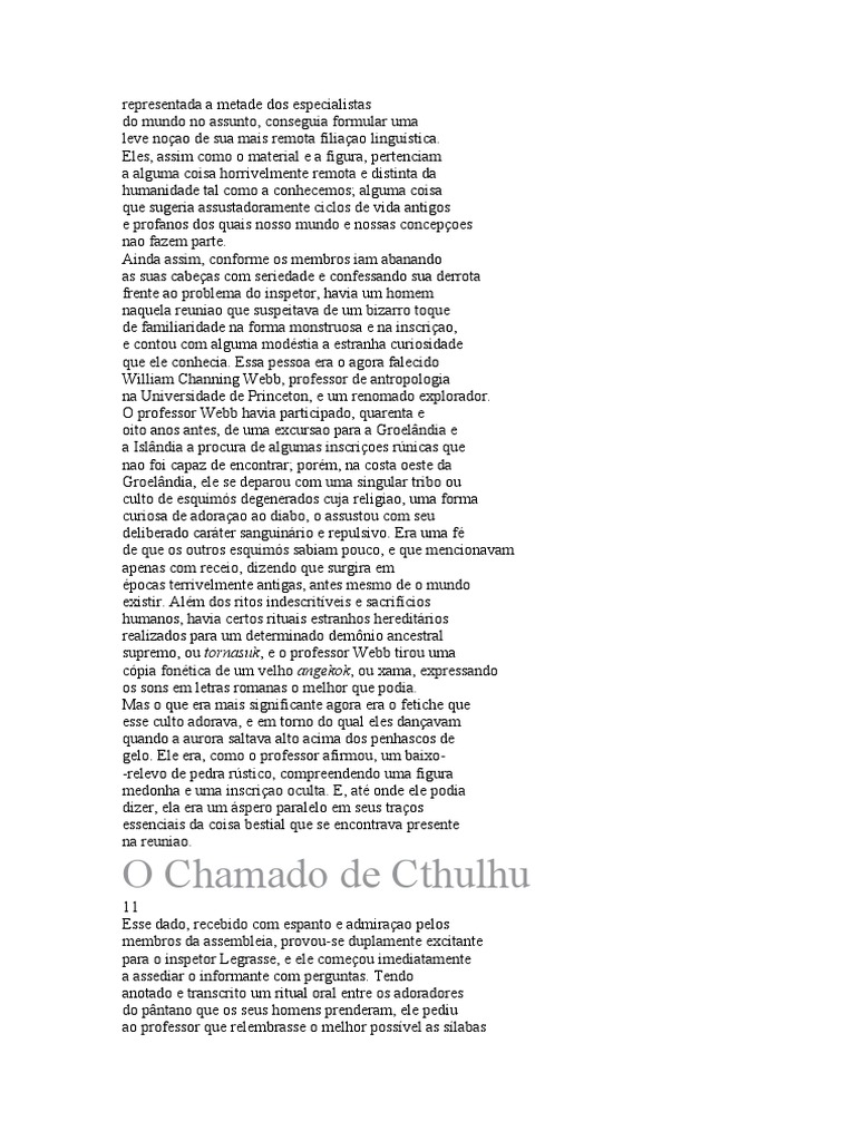 com a narrativa do culto de Legrasse, eu fiz uma viagem