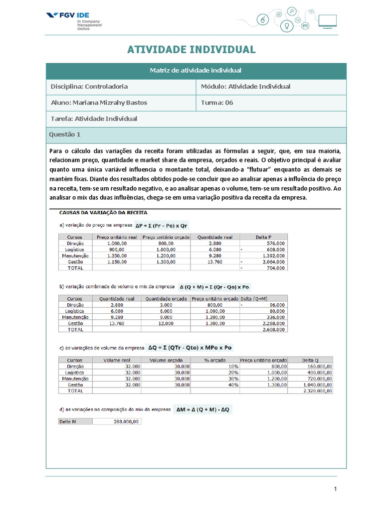 Disciplina: Controladoria Módulo: Atividade Individual