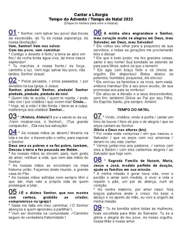 01 * Senhor, vem salvar teu povo/ das trevas 06 A minha alma engrandece o Senhor,