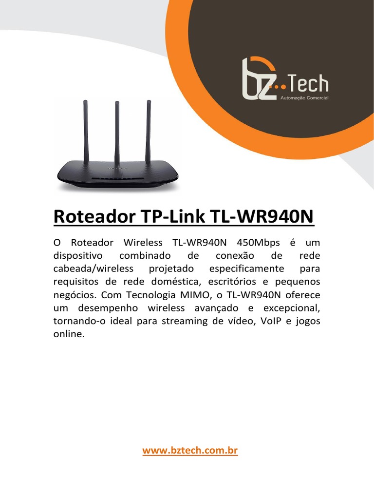 negócios. Com Tecnologia MIMO, o TL-WR940N oferece