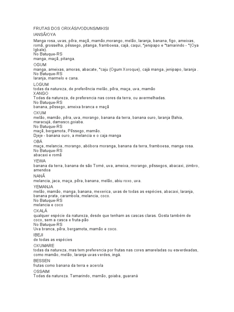 OBS.: Esta relação de frutas pode variar de acordo com cada região e axé.