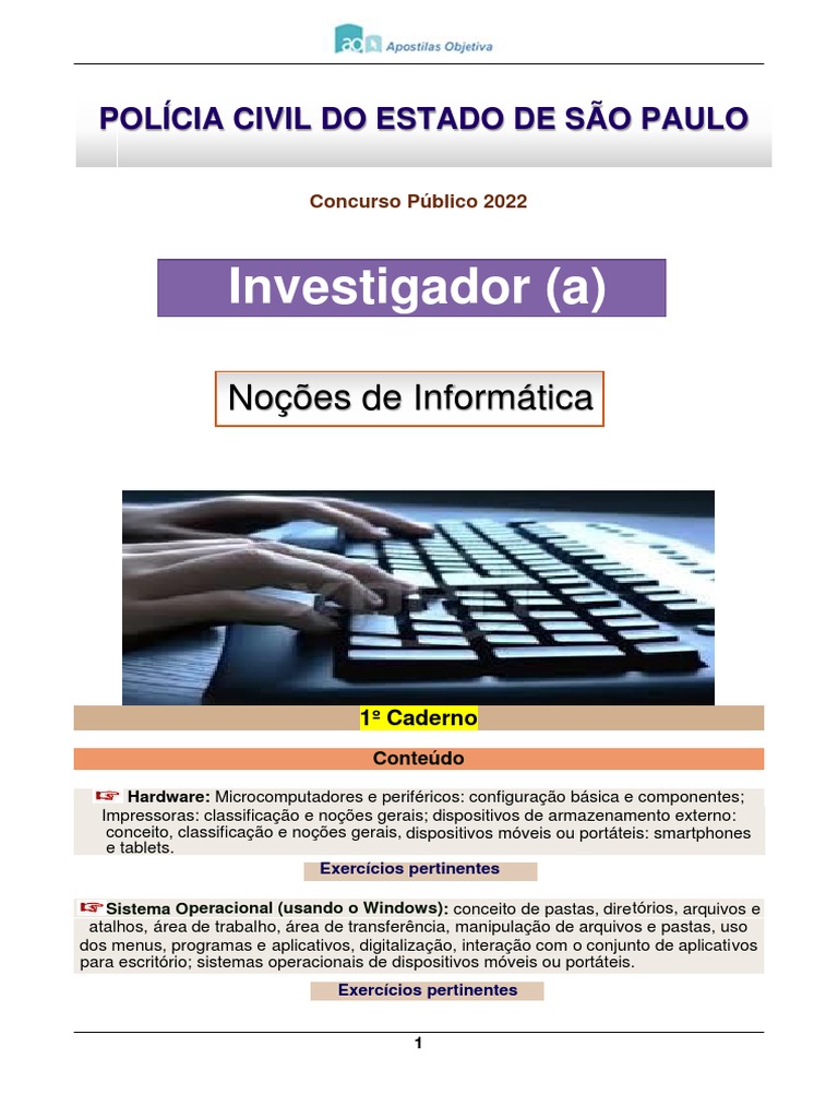 Hardware: Microcomputadores e periféricos: configuração básica e componentes;