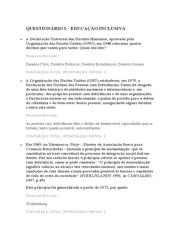 QUESTIONÁRIO I – EDUCAÇÃO INCLUSIVA