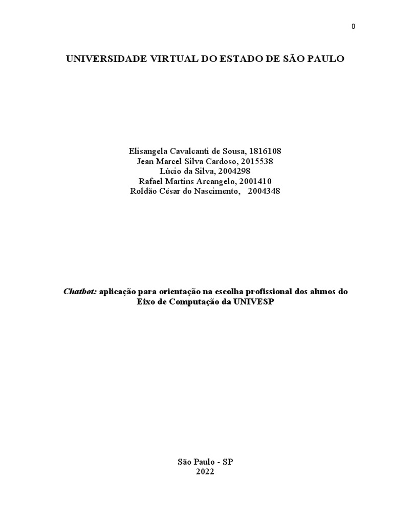 ARCANGELO, Rafael Martins; NASCIMENTO, Roldão César do. Chatbot: aplicação para