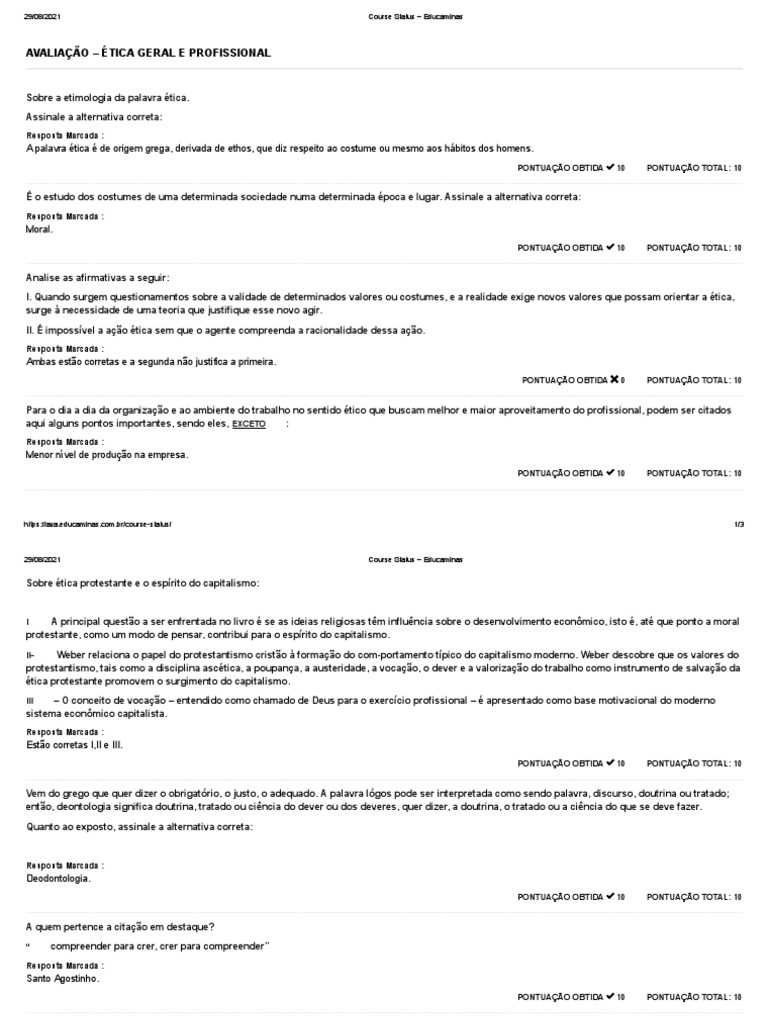 AVALIAÇÃO – ÉTICA GERAL E PROFISSIONAL