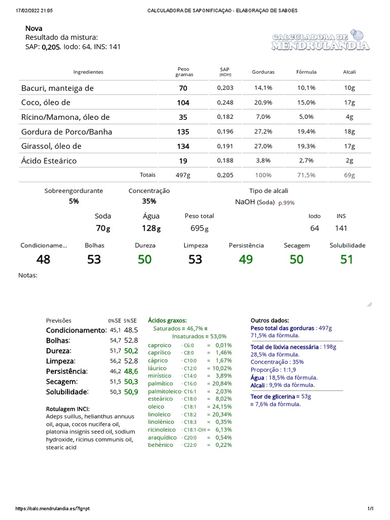 17/02/2022 21:05 CALCULADORA DE SAPONIFICAÇÃO - ELABORAÇÃO DE SABÕES