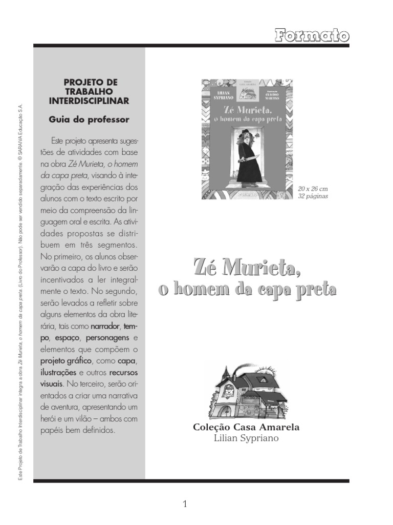 Este Projeto de Trabalho Interdisciplinar integra a obra Zé Murieta, o homem da capa preta. (Livro do Professor). Não pode ser vendido separadamente. © SARAIVA Educação S.A.