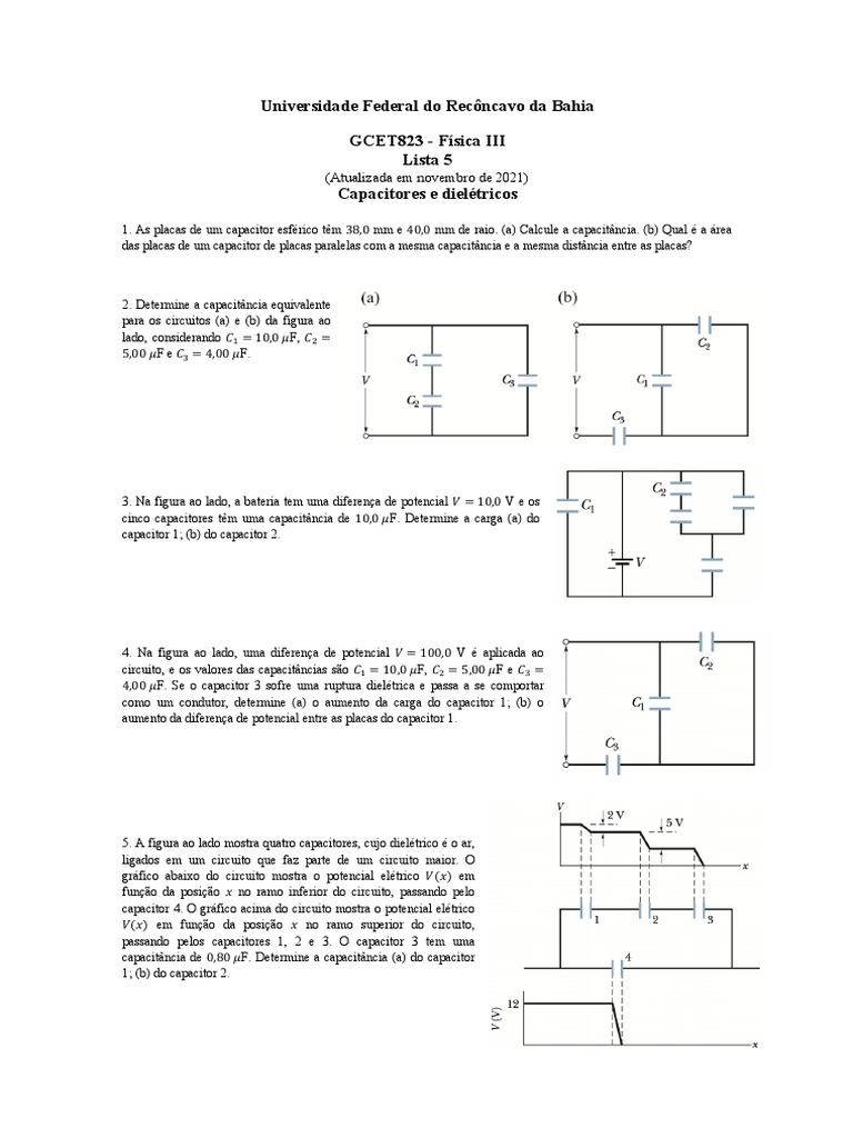 8. Na figura abaixo, 𝐶! = 10,0 𝜇F, 𝐶" = 20,0 𝜇F e 𝐶# = 25,0 𝜇F. Se nenhum dos capacitores pode suportar uma